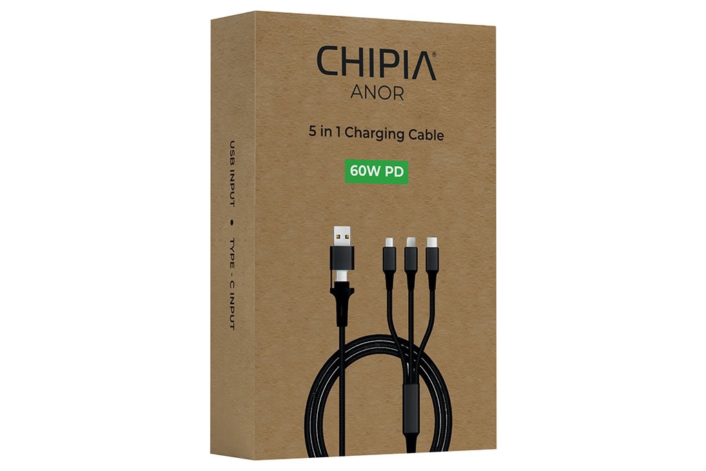 One cable, five charging options: USB-A and USB-C inputs with Lightning, USB-C, and Micro USB outputs. Perfect for businesses looking to cover a wide range of devices without clutter or confusion. It’s a compact and highly adaptable solution for all tech users.