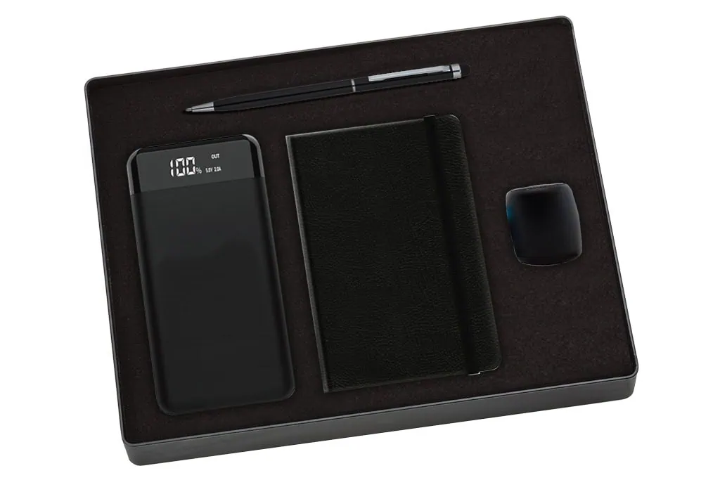 To protect the products from external impact and give the branded gift set a premium look and feel, we use a custom-cut EVA foam organiser.