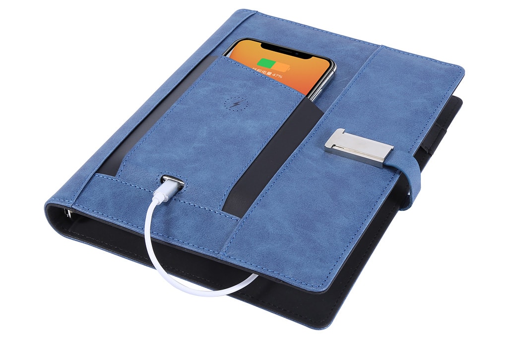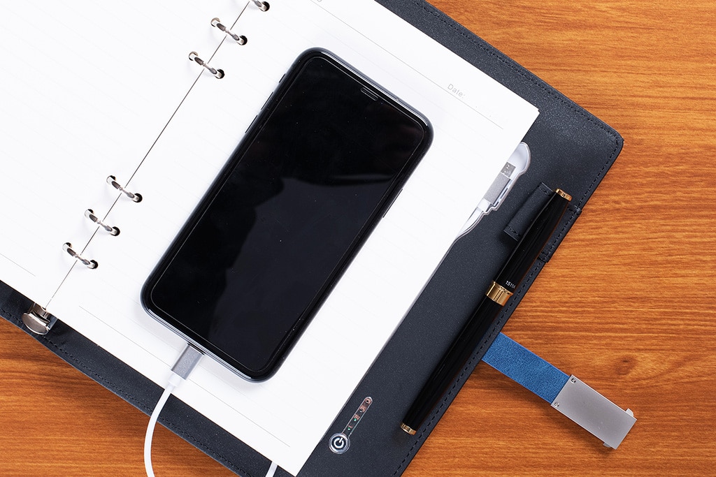 This versatile power bank organiser combines wireless charging, a built-in power bank and notebook features in one elegant design. Perfect for professionals, travellers and corporate clients, it offers everything you need throughout the day — all in one organised, easy-to-carry accessory.