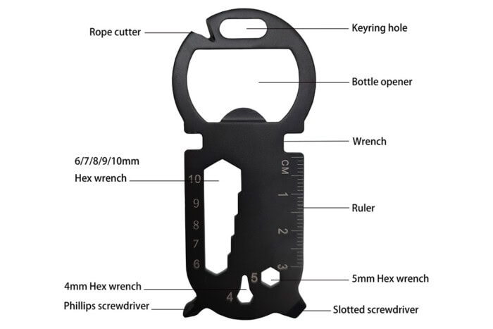 Measuring just 2 mm thick, this ultra-slim multitool fits easily in your wallet, pocket, or on your keys—without adding bulk. Its matte black stainless steel construction offers exceptional durability and a sleek, modern look. Whether you're commuting in the city or adventuring outdoors, it’s a compact tool you'll want to keep with you.