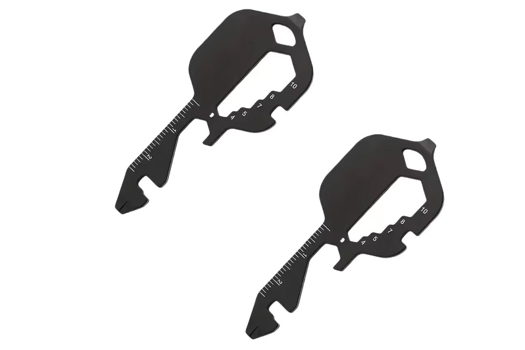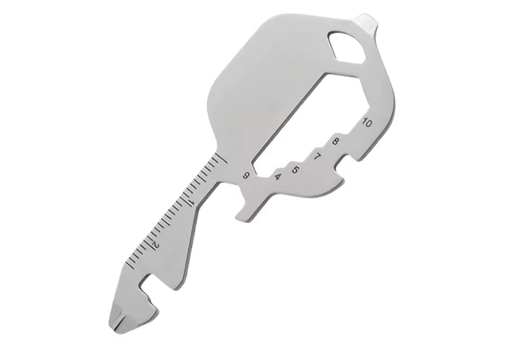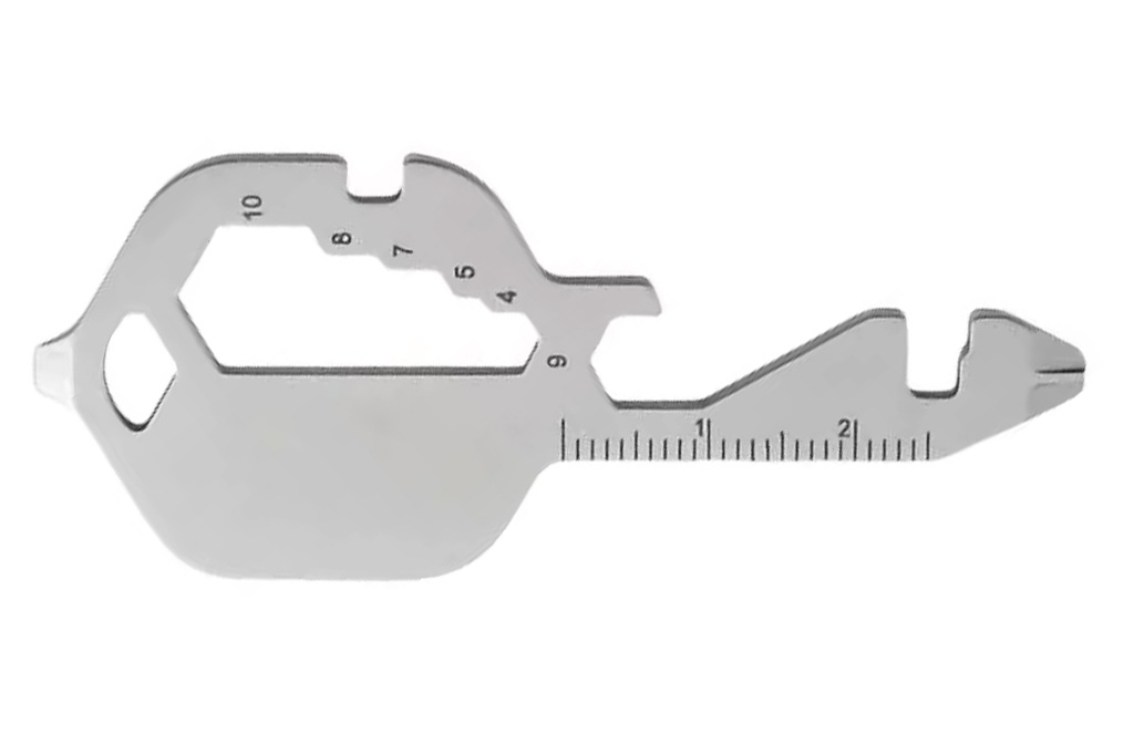 This compact multitool keyring includes: