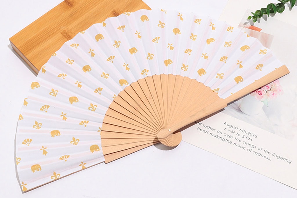 Made from high-quality wood and durable polyester fabric, this fan ensures long-lasting use. Its smooth folding mechanism makes it easy to open and close, while the natural wooden texture reflects your brand’s eco-friendly and aesthetic values.